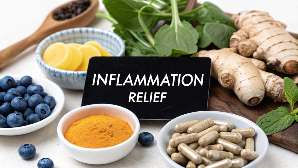 This guide will give you jargon-free, actionable strategies to help you cool that internal fire and feel your best again. We'll dive into powerful foods, simple lifestyle changes, and supportive therapies all designed to bring your body back into balance. To get a better sense of how specific ingredients can help, you can explore the science-backed olive oil anti-inflammatory benefits.